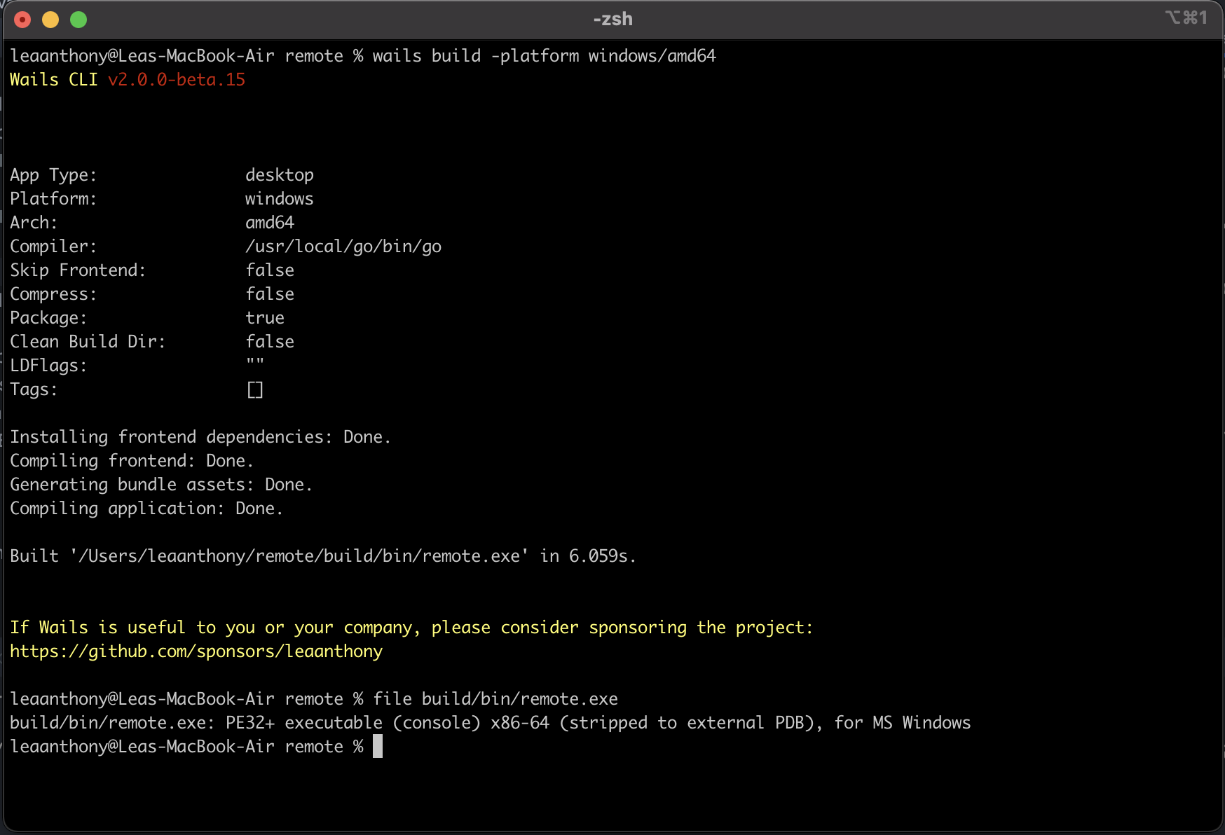 PS: If you or your company find Wails useful, please consider sponsoring the project. Thanks!