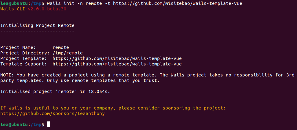 PS: 如果您或您的公司发现 Wails 有用, 请考虑 赞助项目。 谢谢!